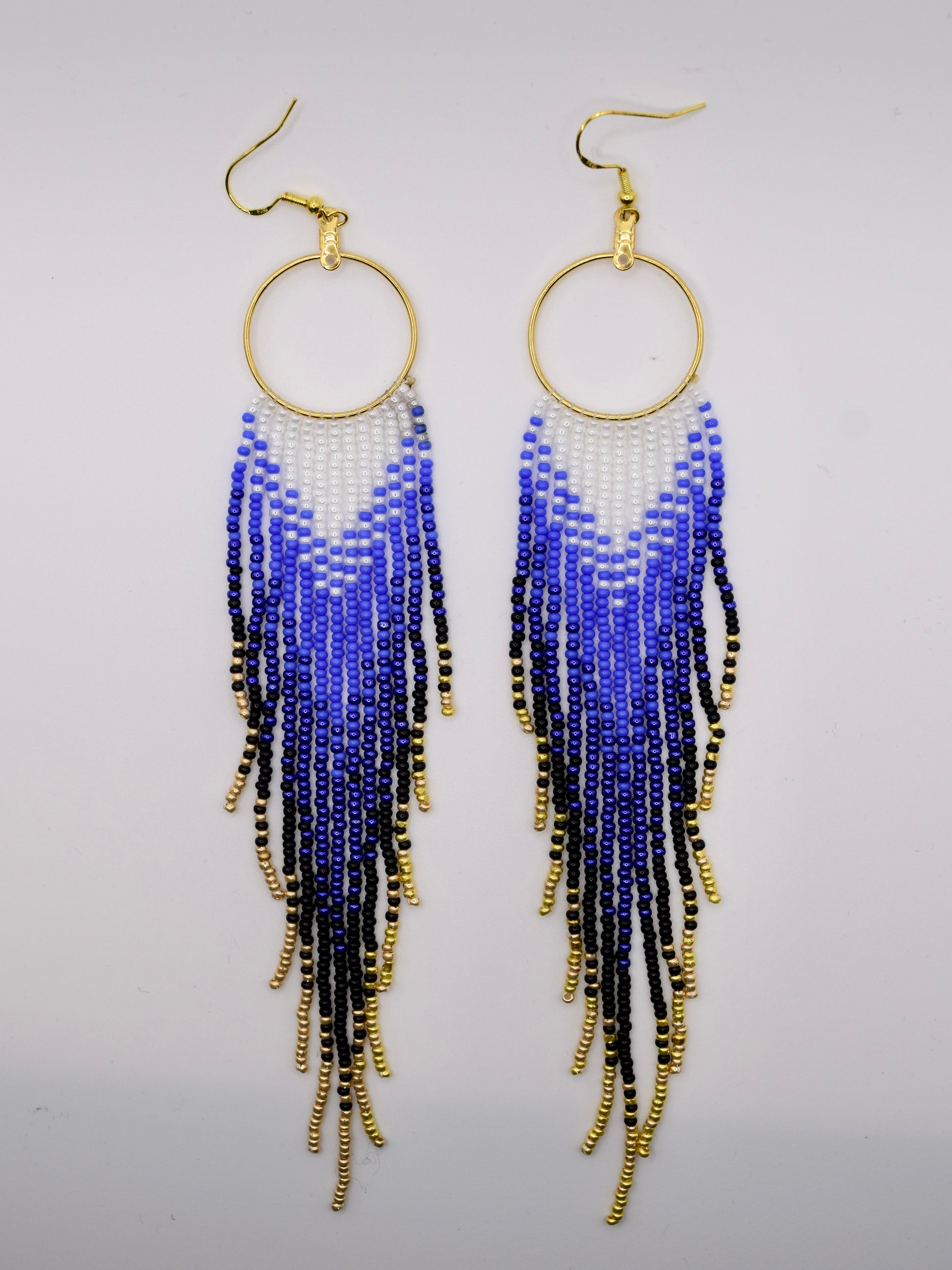 Boucles d'oreilles perlées à franges sur support en forme de cercle