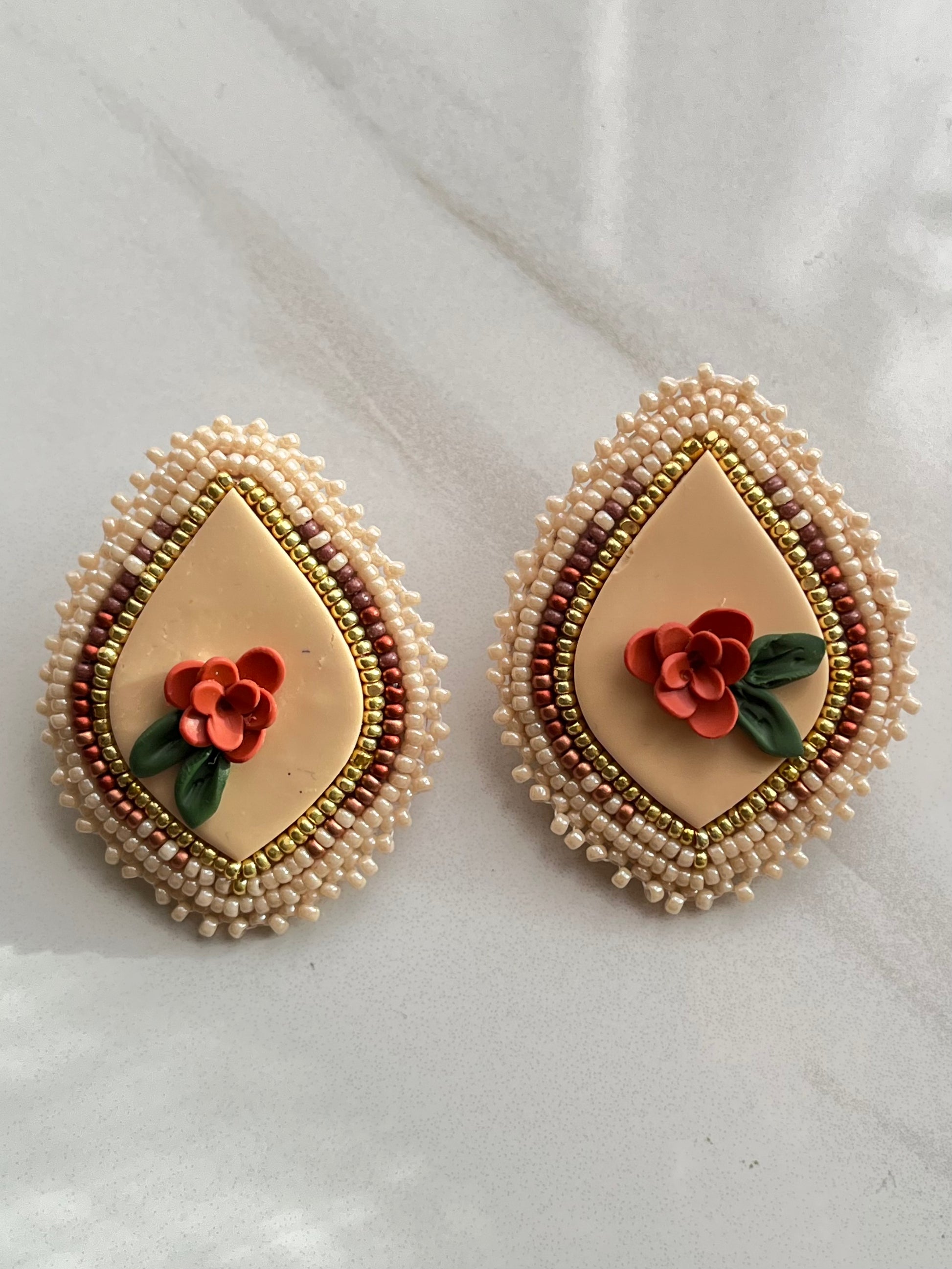 Boucles d'oreilles perlées sur feutrine. Centre en argyle polymère. Dimension : 2 pouces de hauteur, 1,5 pouces de largeur.