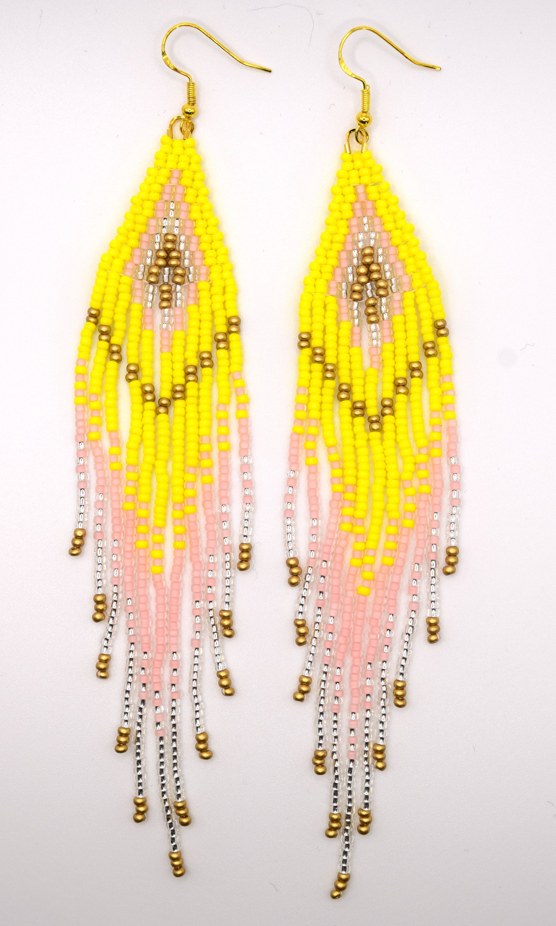 Boucles d'oreilles à franges, crochet hypoallergène, environ 6 pouces de longueur.